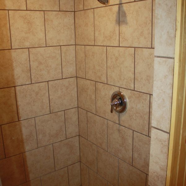 Clean and private individual shower stalls with quality tile work and fixtures